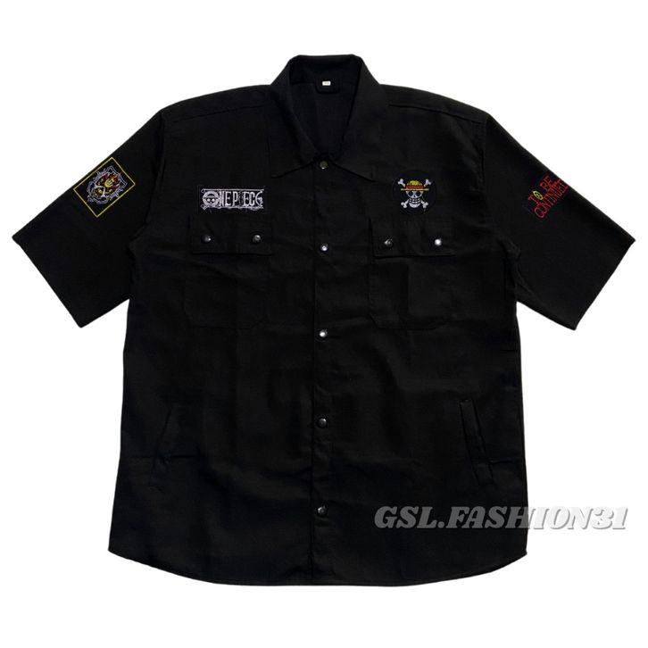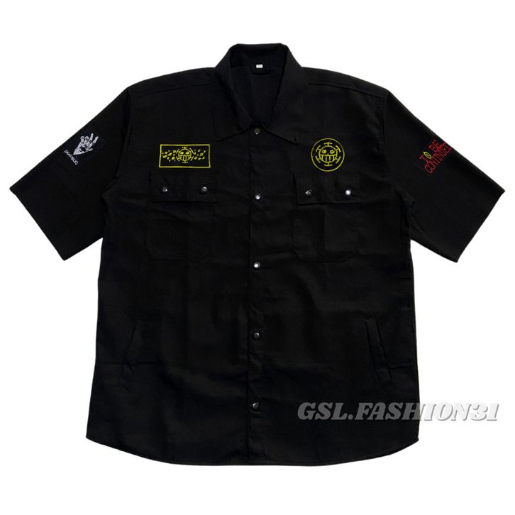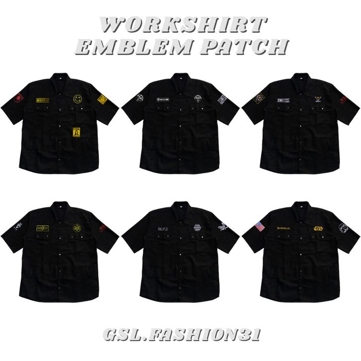 GROSIR Workshirt Kemeja Semi Parka Pria Hitam Emblem Patch Full Bordir Lengan Pendek S - 5XL Jumbo abagb