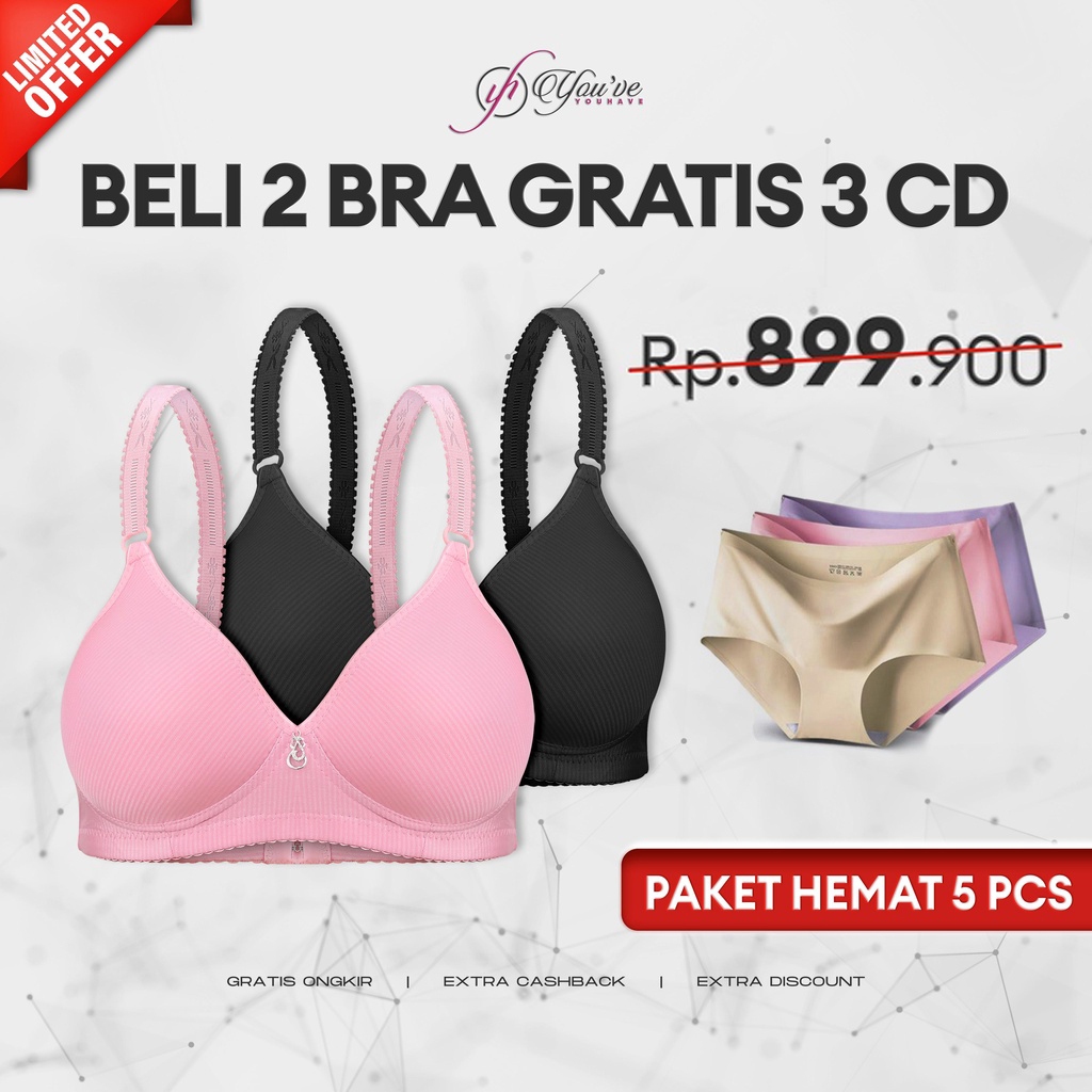 YOUHAVE PAKET HEMAT 2 PCS BRA 1231 GRATIS 3 PCS CD SEAMLESS C920 3 BUNDLE BRA WANITA CELANA DALAM WANITA CANGCUT WANITA