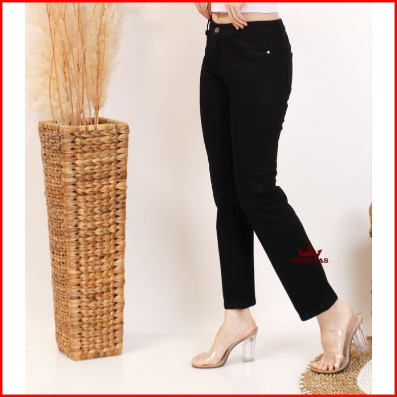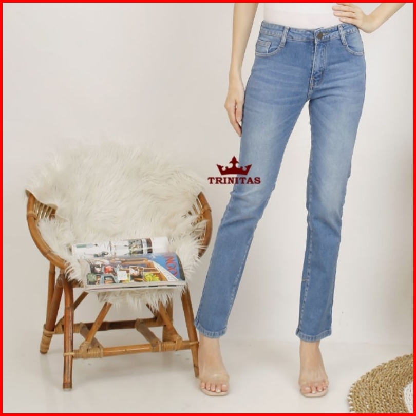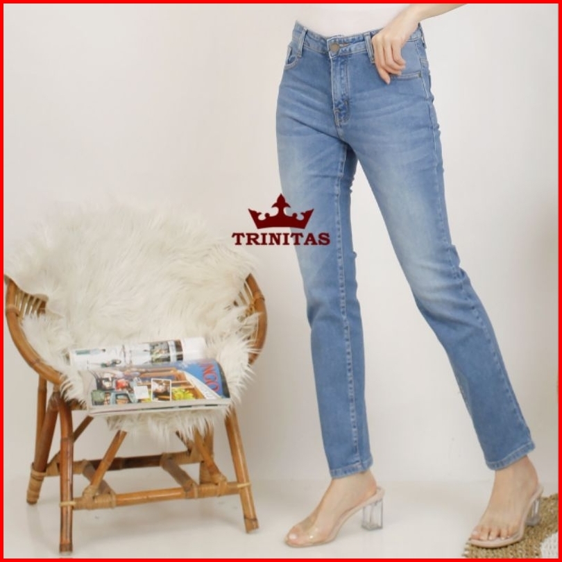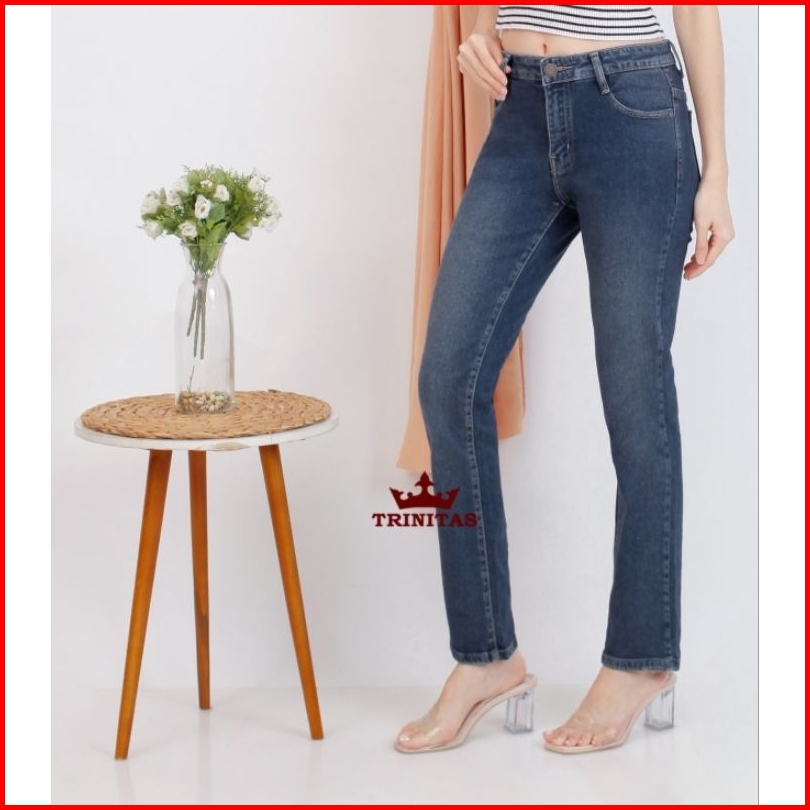Hw Straight Leg Highrise Regular Jeans Stret Premium Freissy Bisa Melar Like Import