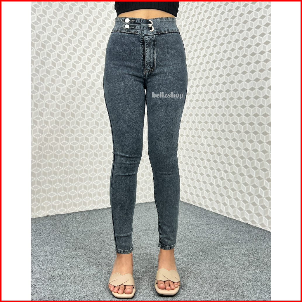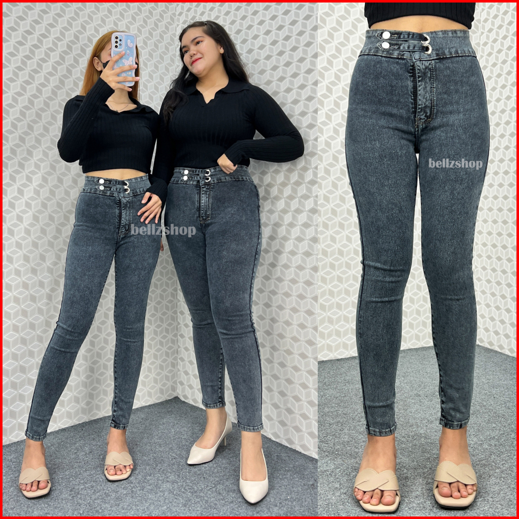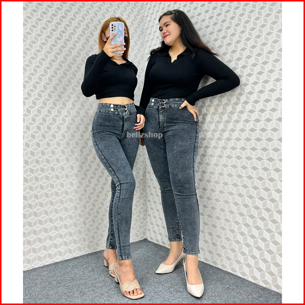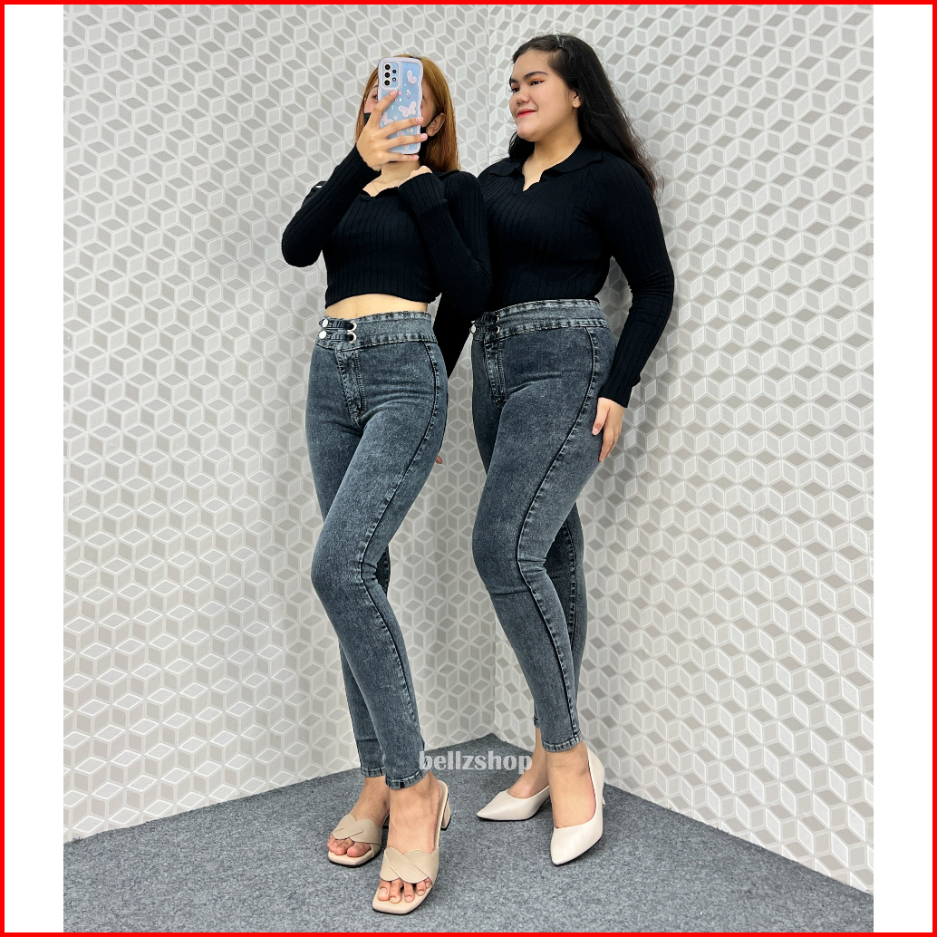 Celana Highwaist Wanita Jeans Skinny Stretch Snow Black Jumbo Kekinian Premium Luna Size 27 Sd 38