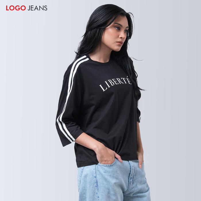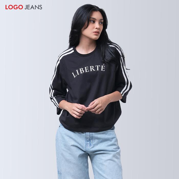 LOGO JEANS KAOS WANITA LEONORA BLACK 13863L4BK BAJU JERSEY KATUN NYAMAN PANJANG POLOS - M