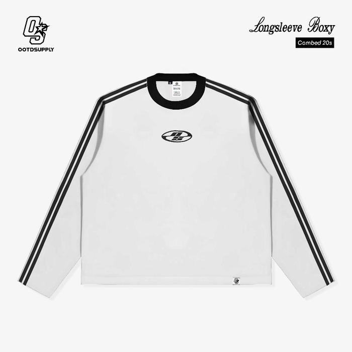 OOTDSUPPLY LONGSLEEVE BOXY DOUBLE STRIPE NEOCORE EMBROIDERY L OVERSIZE T-SHIRT LENGAN PANJANG L KAOS KERAH I KAOS STRIPE | LSBX002 - BLACK, S