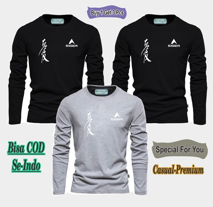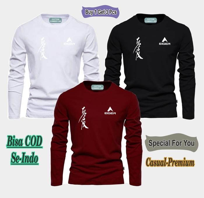 PROMO SPECIAL EG3R KAOS 3 PCS LENGAN PANJANG EG3R RILEX WHITE POLOS COMBED KATUN DEWASA COWOK BAHAN TEBAL BERKUALITAS SABLON RANTAI JAIT RAPI - ABU TUA-HITAM-NAVY, S