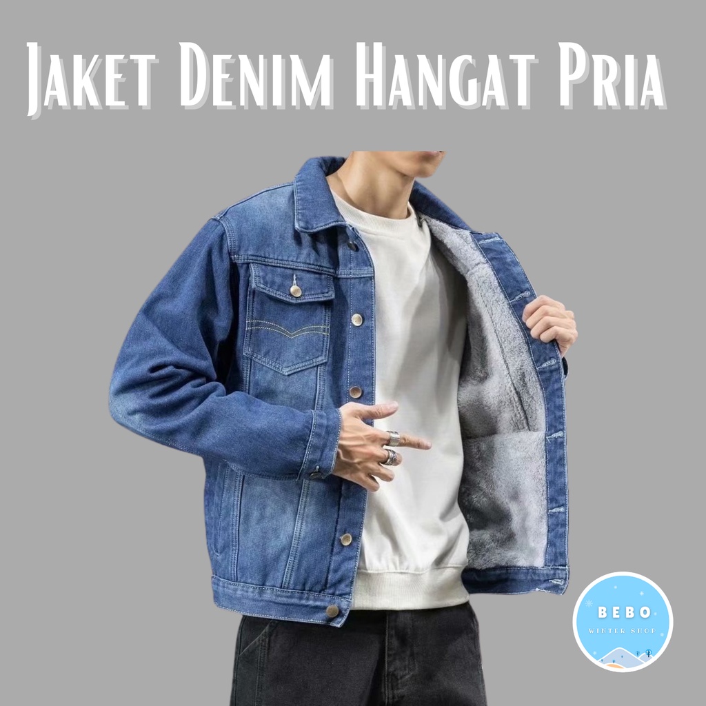 Jaket Jeans Pria Jaket Denim Pria Hangat untuk Musim Dingin
