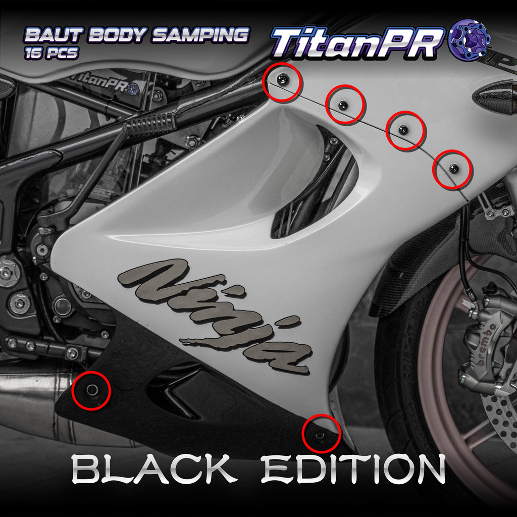 PAKET BAUT TITANIUM GRADE 5 FAIRING KIRI KANAN NINJA RR ZX OLD BLACK EDITION