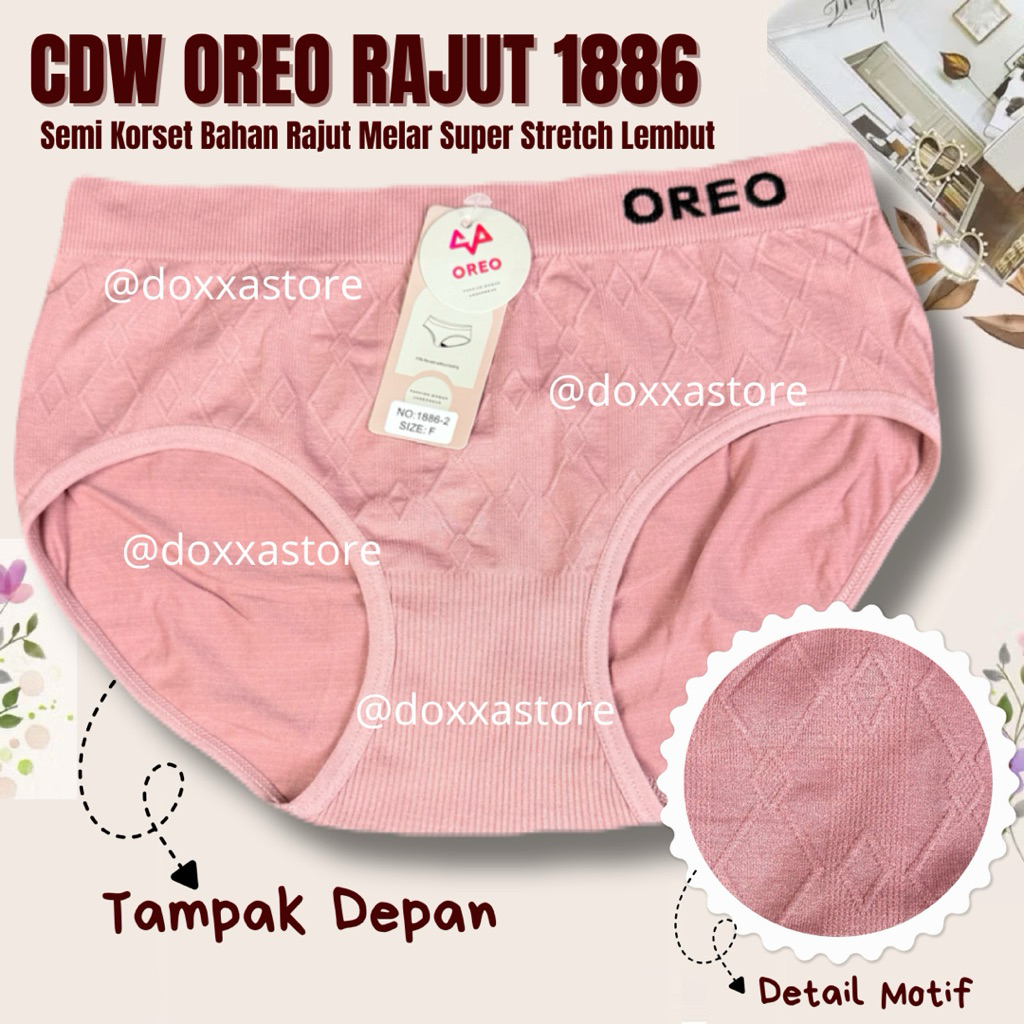3,6,12Pcs CD Celana Dalam Wanita Rajut Oreo 1886 Semi Korset Corak Random Lembut Elastis