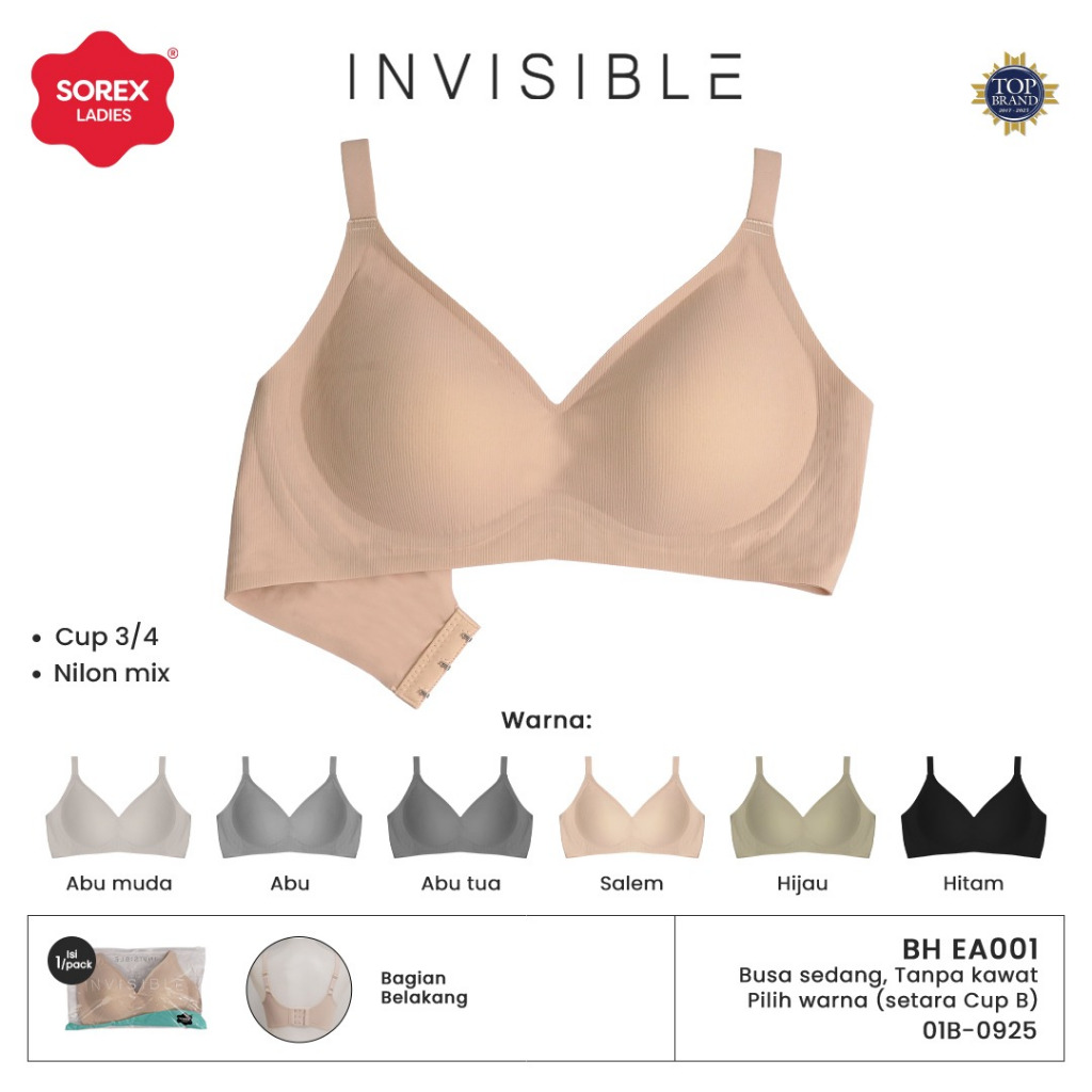 Sorex Invisible Bra Harian Seamless Busa Sedang Tanpa Kawat Kait 3 Nilon Mix Setara Cup B Cup 34 Bra BH EA 001