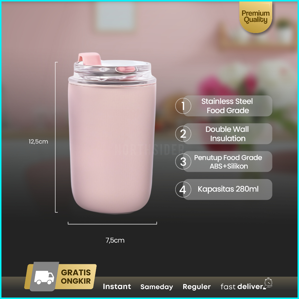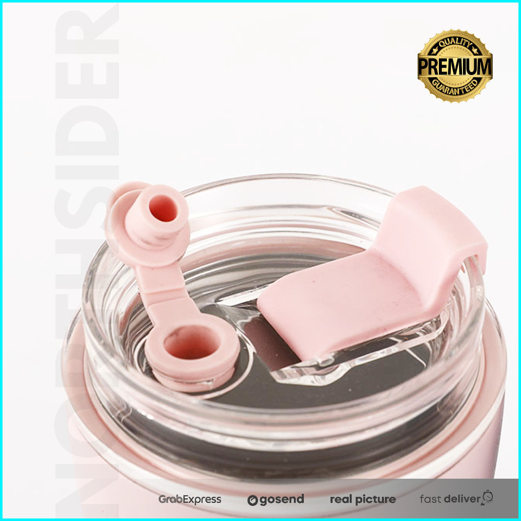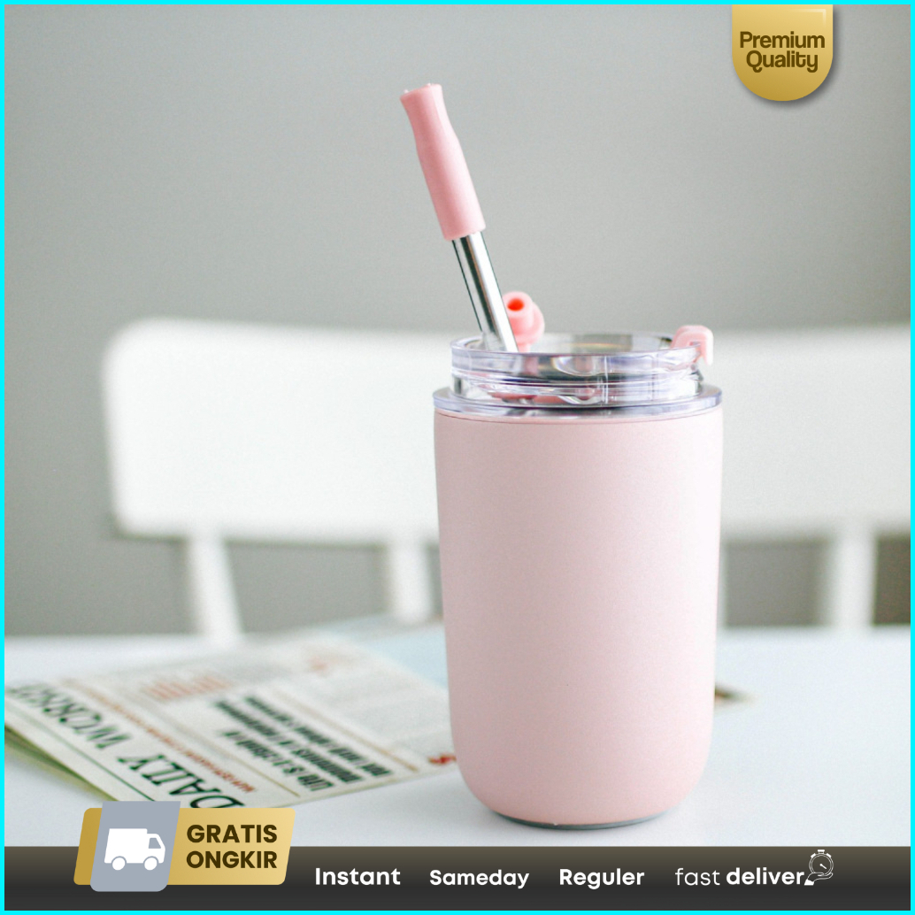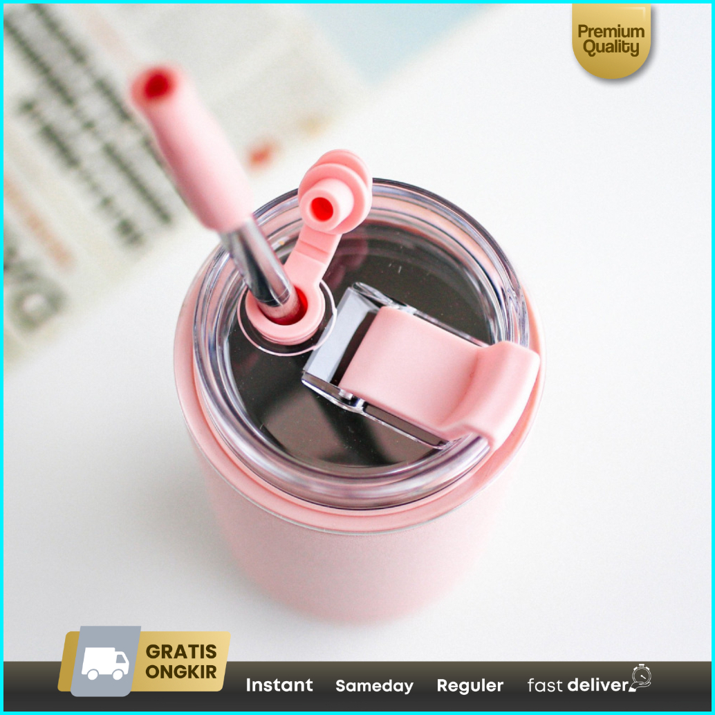 Tumbler Kopi Teh Coffee Mug Double Wall Stainless Straw 300ml Sl-218