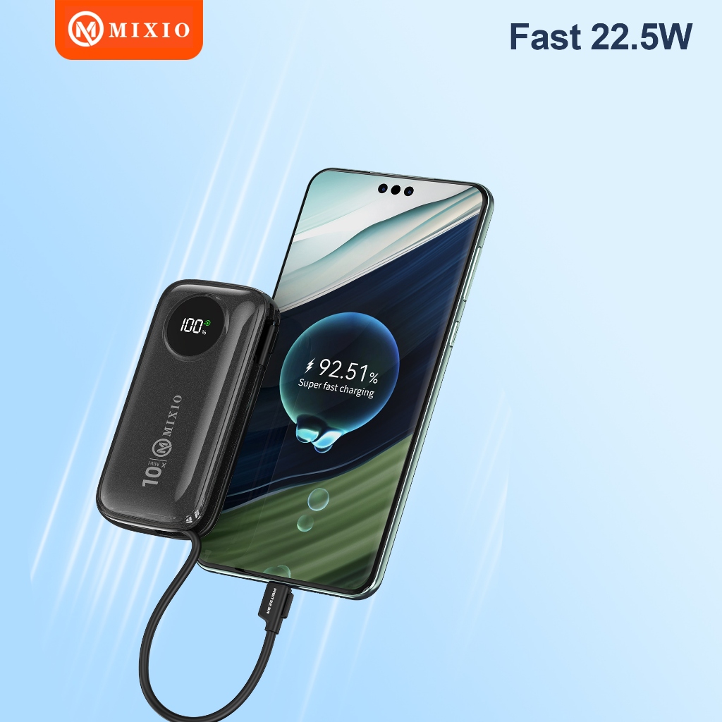 [Mall] MIXIO MP-07 10000mAh Powerbank Mini 22.5W With Kabel Fast Charging Lightning ios & Type C Desain Premium Terlaris