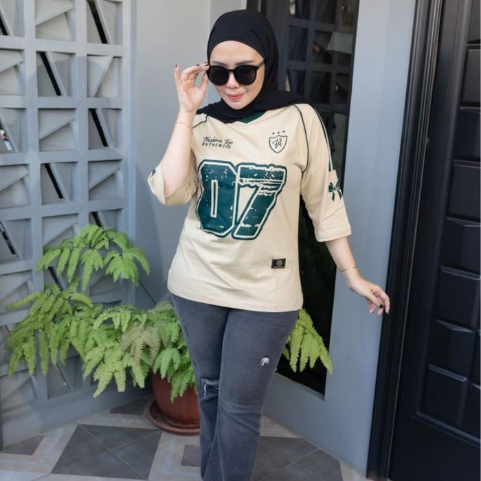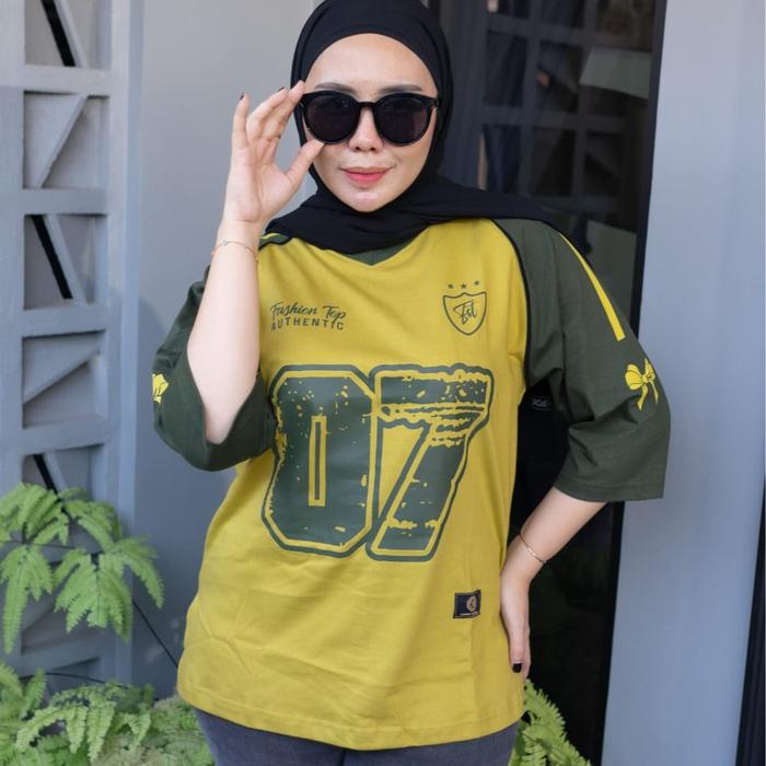 XVLORE | OVERSIZED T-SHIRT WANITA VINTAGE / KAOS JUMBO BASEBALL WANITA / ATASAN NUMBER SPORTY 07 - KUNING MUSTARD, BESAR ( LD 115-120)