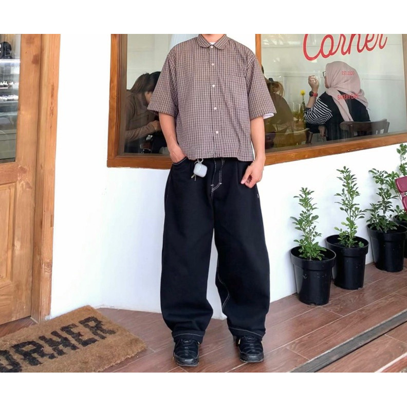 R&R Celana Jeans Baggy Raw Denim Tebal 14 Oz