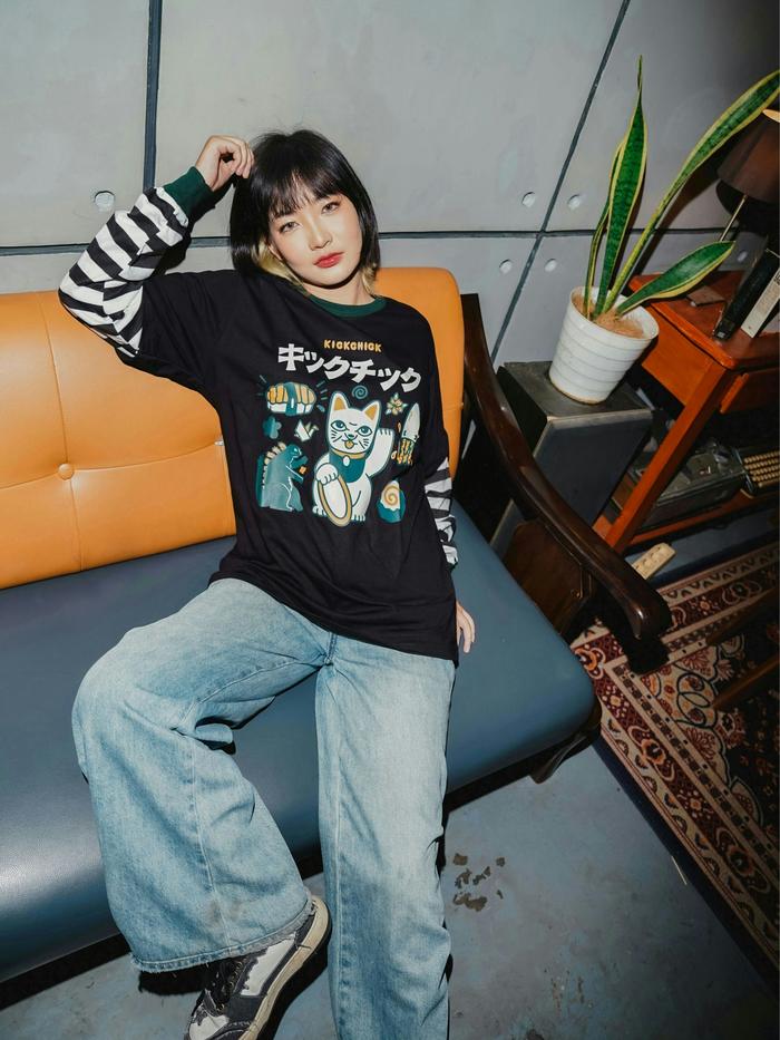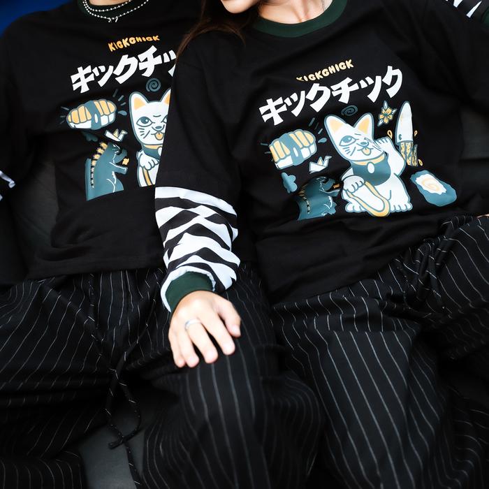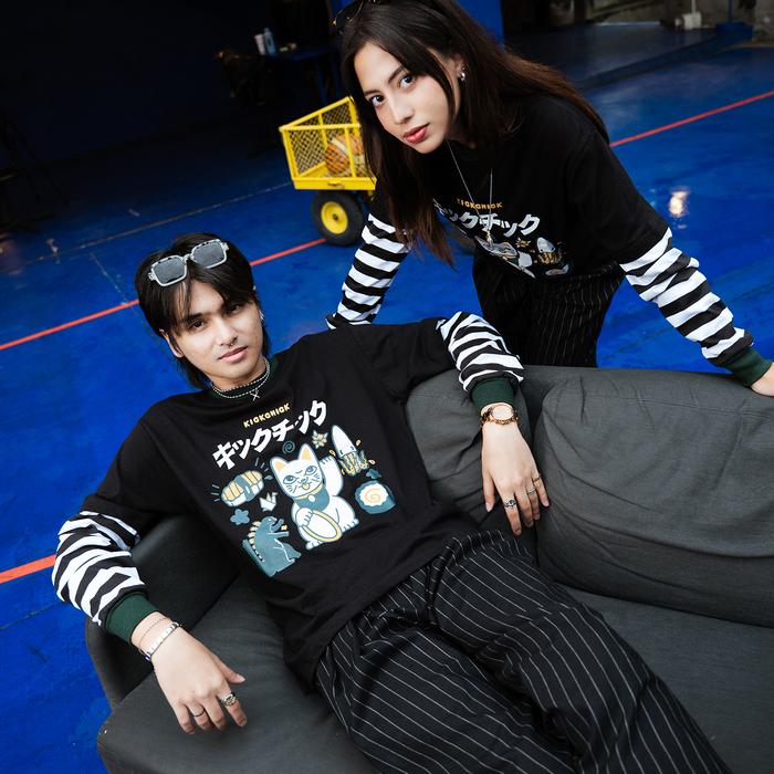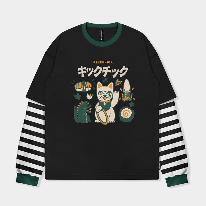 KICKCHICK DOUBLESLEEVE STRIPE KOSEI BLACK ARMY | KAOS ATASAN | LENGAN PANJANG UNI KCSAP135 - BLACK ARMY, S