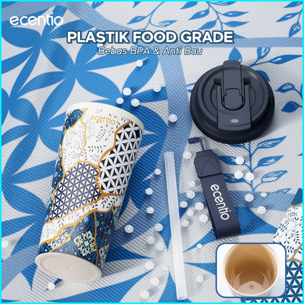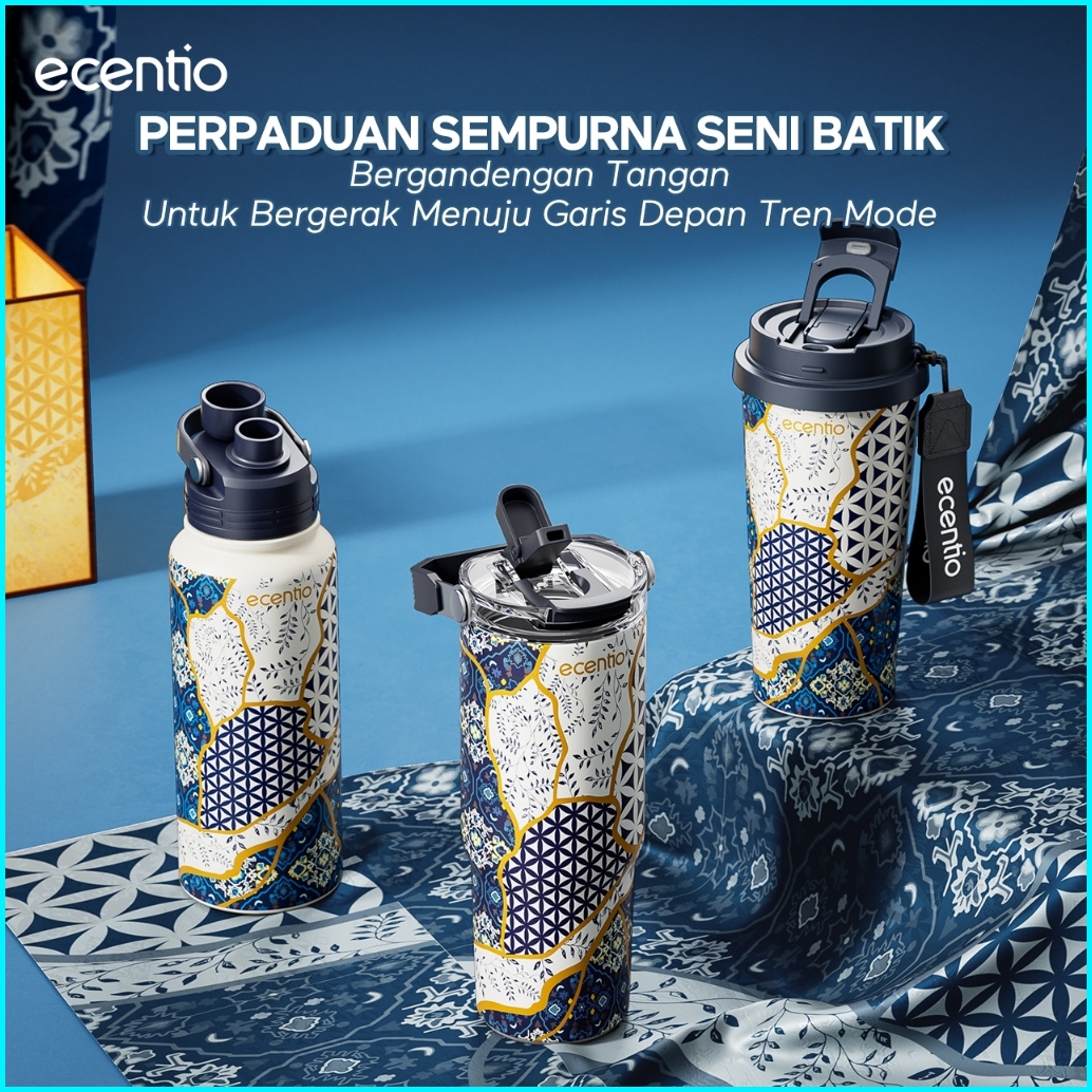 Ecentio Batik Botol Minum Aesthetic Series Food Grade Plastik Stainless Tumbler Premium Quality Tumbler Es Batu Tahan La