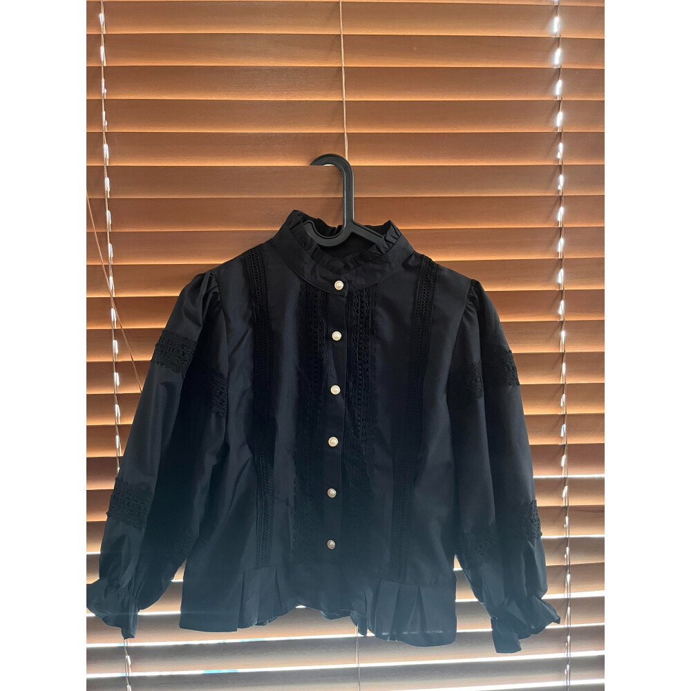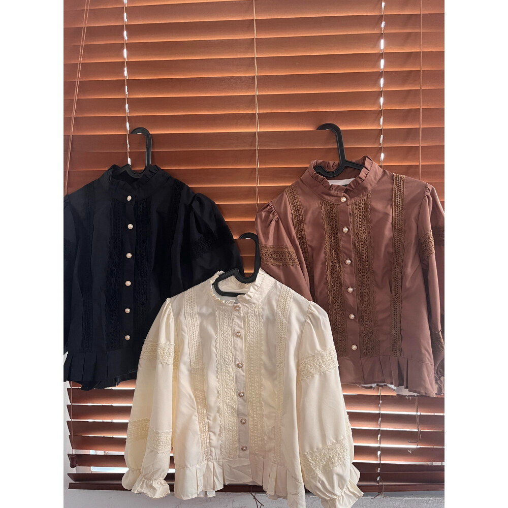 Baju Wanita Lengan Panjang Gaya Retro | Longgar | Kancing Sebaris | Lengan Panjang | Gaya Retro | Warna Hitam, Khaki, & Apel Kuning | Bahan Halus | Desain Detil Renda | Original By Chicmore