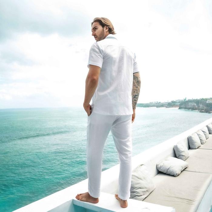 REMEDY | ULUWATU CELANA PANJANG LINEN PRIA PUTIH | LINEN LONG PANTS MEN WHITE - WHITE, S