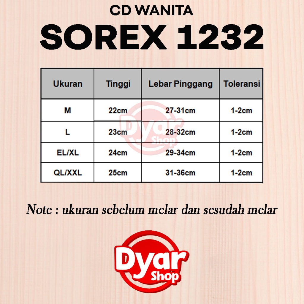 6 pcs CD Sorex 1232 Sorex Celana Dalam Basic Midi Katun Mix Strecth Celana Dalam Sorex Dyarshop