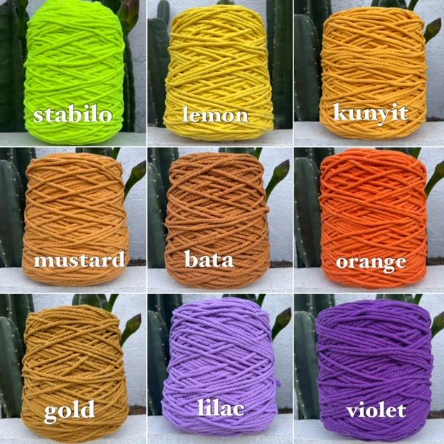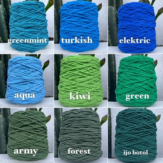 aqua, baby blue, baby lime, bata, beige 3mm, beige 4mm, black, brick, buttermilk, capucinno, choco, cyan, dark grey, denim, dusty pink, electrik, flamingo, forest, fuschia, green, greenmint, grey, ijobotol, kiwi, kunyit, lemon, maroon, mustard, natural 3mm, natural 4mm, orange, punch, red, tosca, turkish, violet, white 3mm, white 4mm