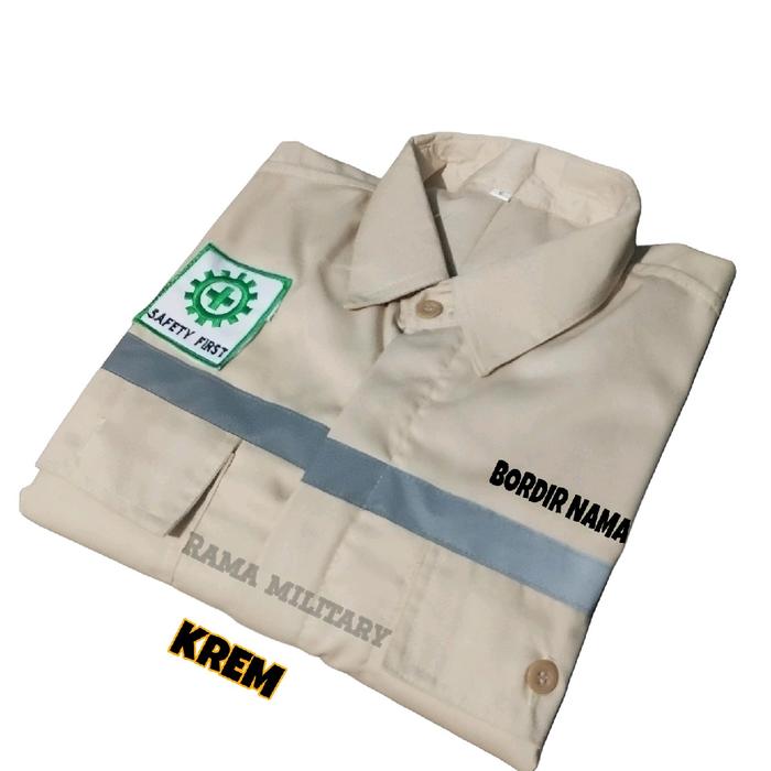 Kameja Kerja Safety Proyek Seragam Wearpack Teknik Atasan Pria Gratis Nama Dada Baju Bordir Hitam Hijau Biru Navy Katun