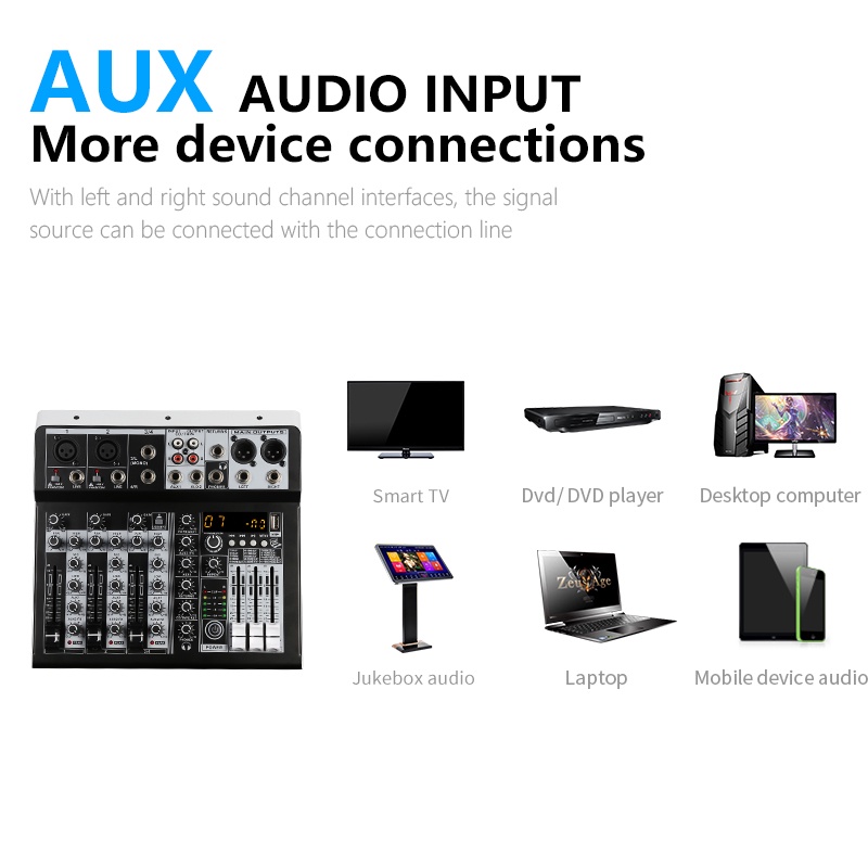 Saluran Aibedo KP4 4 Sistem suara mixer audio profesional Bluetooth dsp Antarmuka audio mini USB