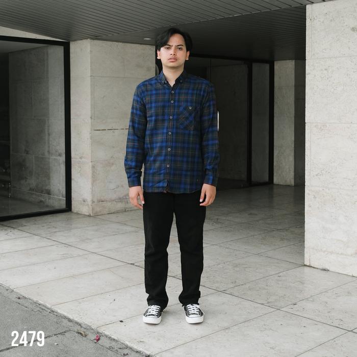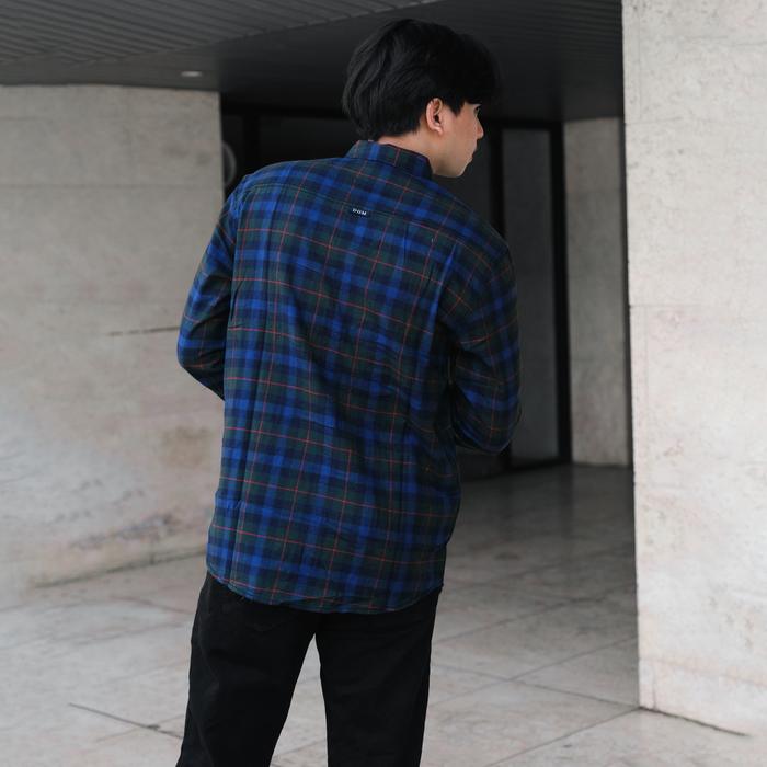 Dgm Kemeja Flanel Pria Panjang Premium Navy - Hijau Garis Merah - L