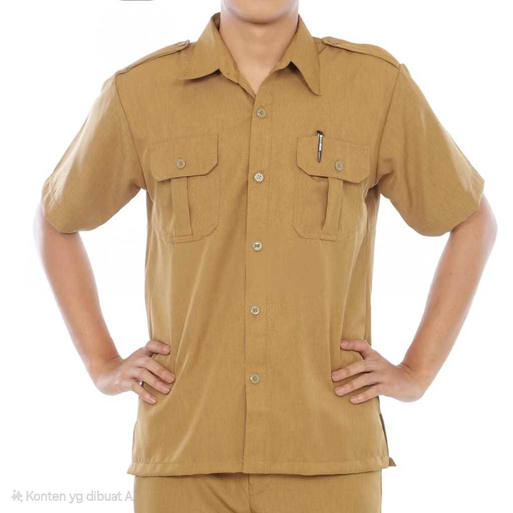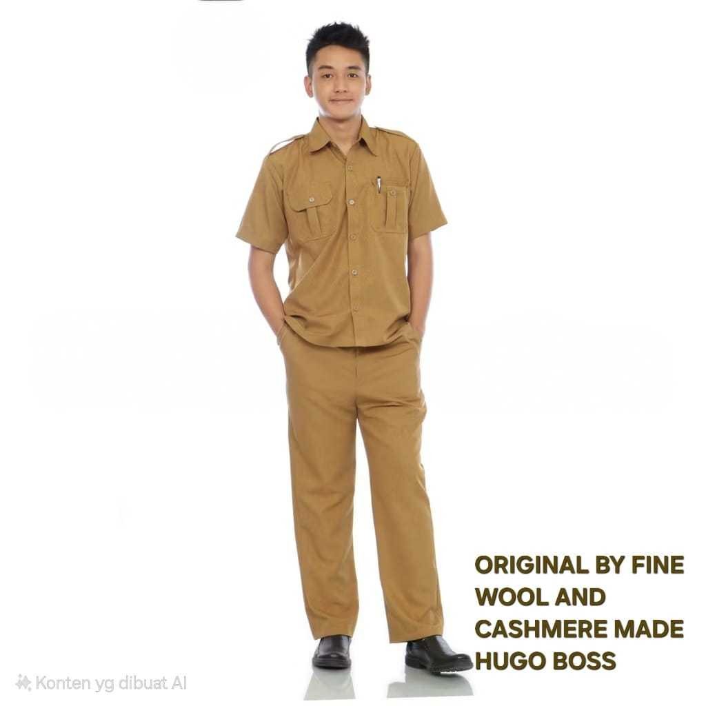 SET Baju Seragam PNS Pemda Pria Khaki Muda Semi Wool Premium Lengan Pendek Set Baju + Celana Baju Pdh Pegawai