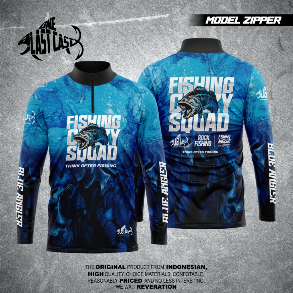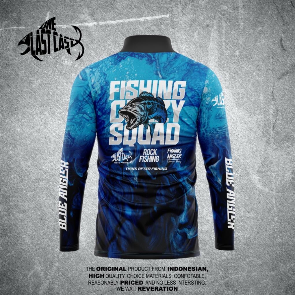 Onelastcast Baju Mancing / Jersey Mancing Model Kerah Berdiri Zipper / Jersey BLUE ANGLER FullPrint