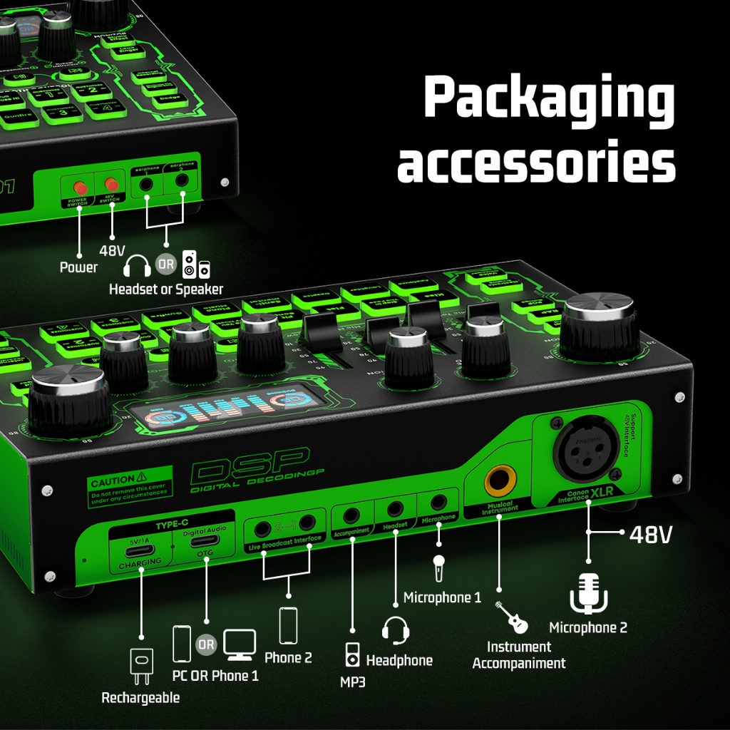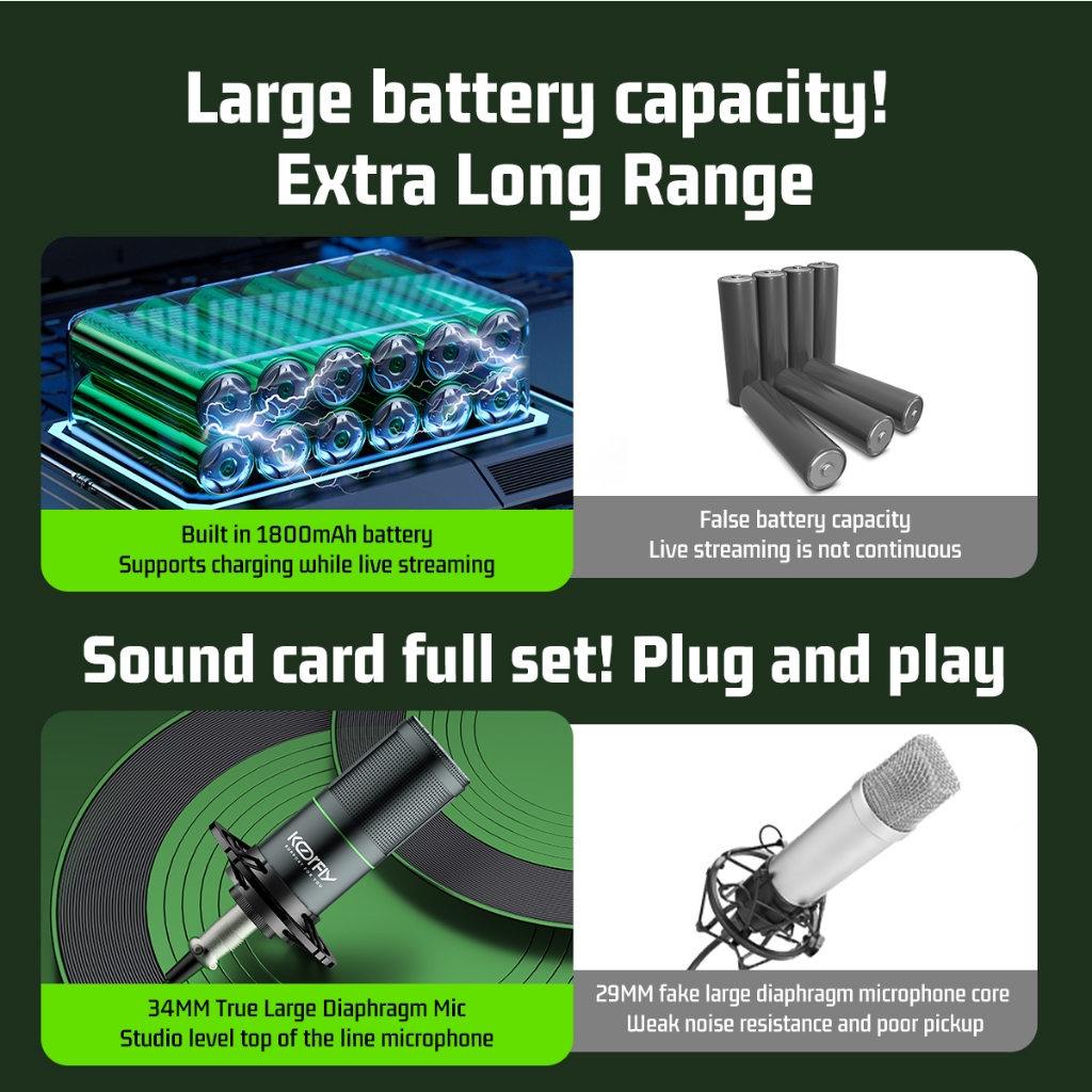 koorfly-KF01 sound card set Audio Bluetooth External Peralatan Bernyanyi atau siaran langsung dengan headphones