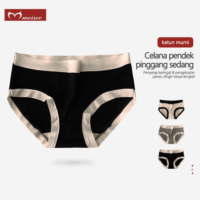 MEISEE 3PCS CD Wanita Elastis Modal Seamless Pinggang Tengah Celana Dalam Wanita