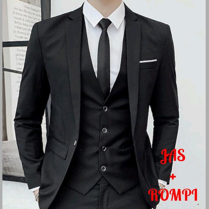Setelan Jas Hitam Pria Original Premium Jas Rompi Celana Jas Blazer Formal Slim Fit - Set Jas 3In1 Fullblack