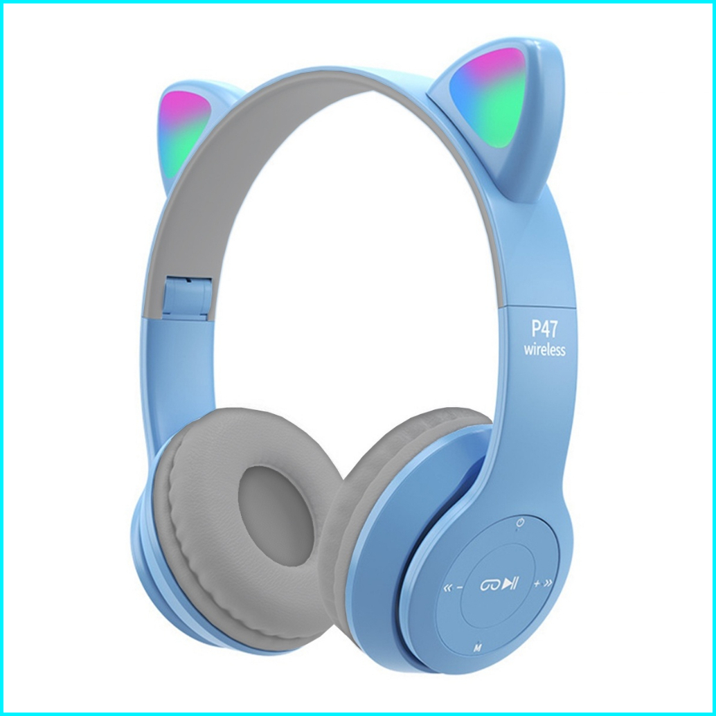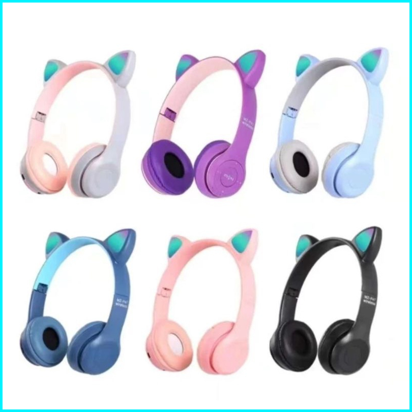 Headphone Wireless Bluetooth Led Cat Ears P47 M Headset Bando Kucing