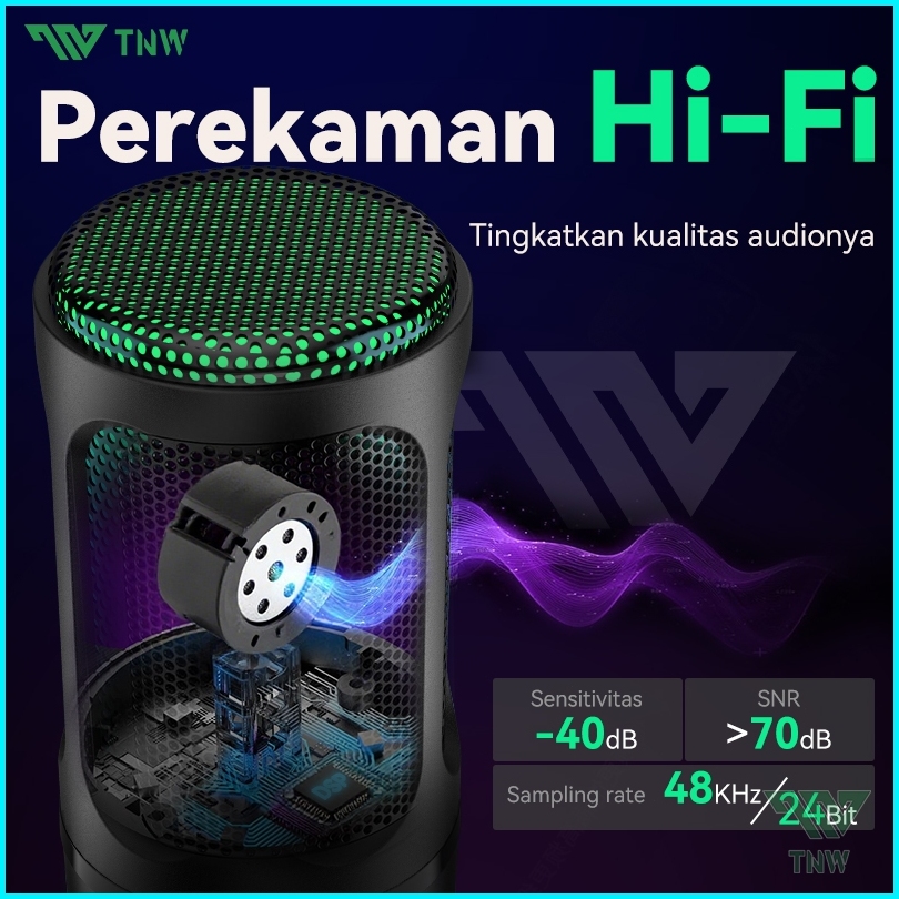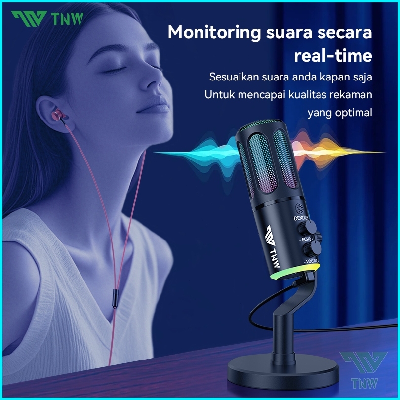 Tnw K18 Microphone Condenser Usb Type-c Mikrofon With Rgb Dynamic Mic For Pc Laptop Streaming Gaming Recording