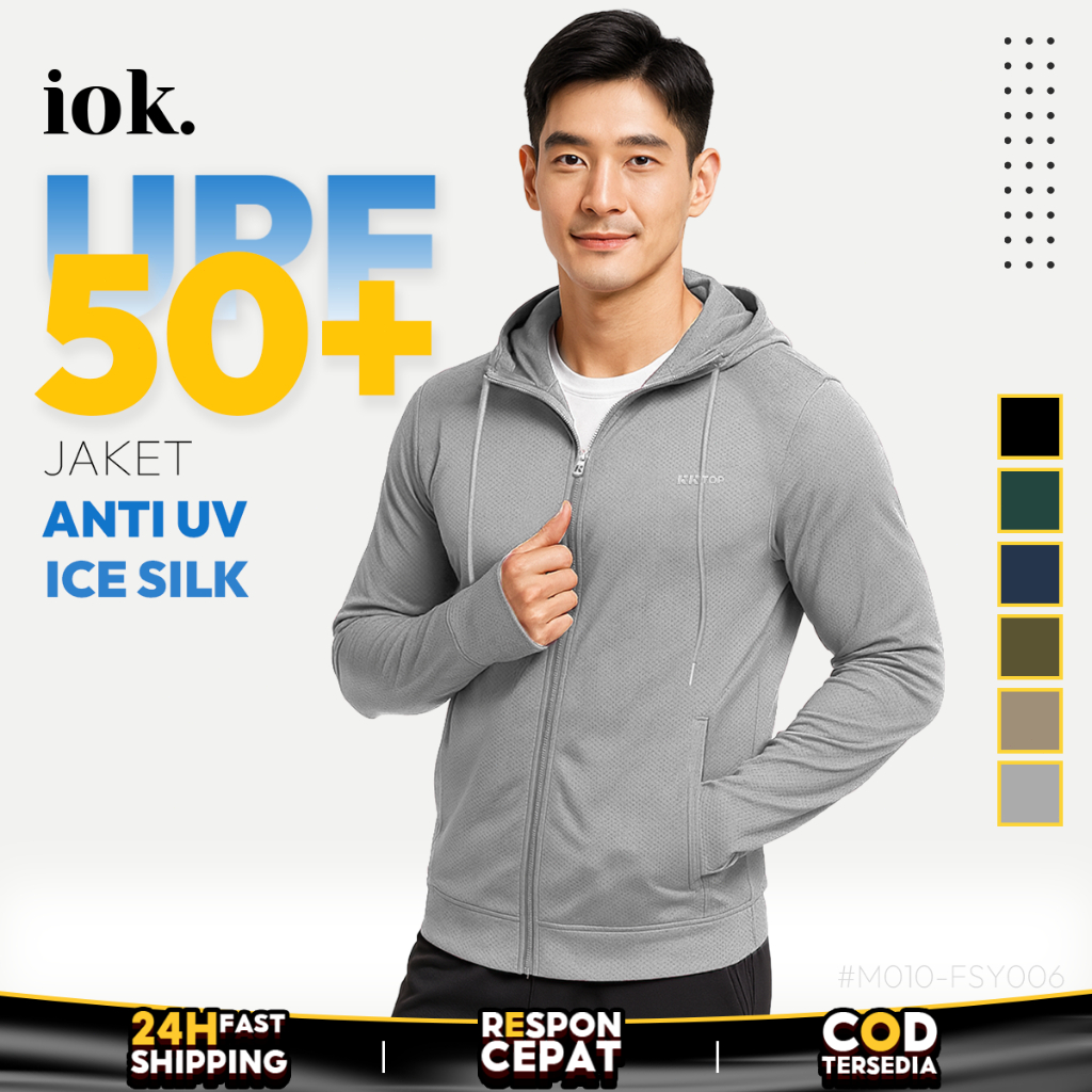 NEW IOK AIRism Style Jaket Olahraga Anti UV Pria UPF150+ Breathable Outdoor Cepat Kering Ice Silk Oversize Hoodie Baju O