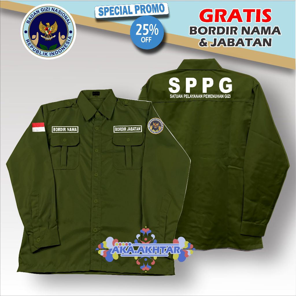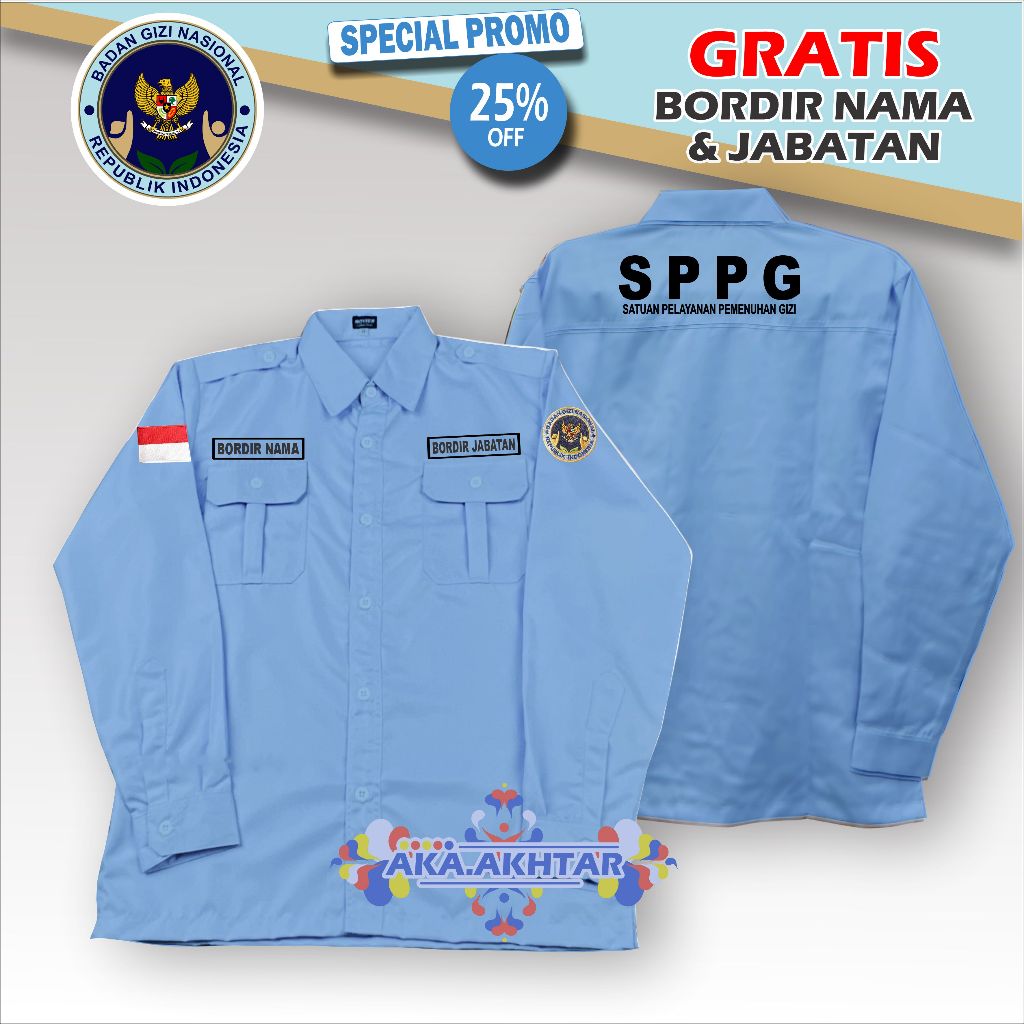 Kemeja SPPG BGN Lengan Panjang Full Bordir | Seragam SPPG Terbaru Lengan Panjang