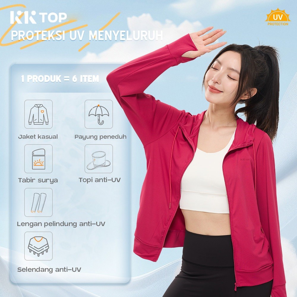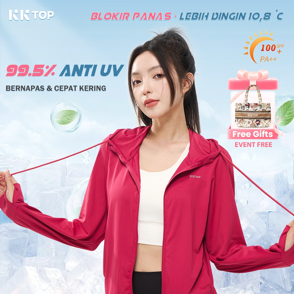 KKTOP Jaket Anti UV - Wanita Mesh Hoodie Kordas, Ritsleting Penuh J010