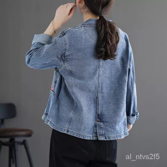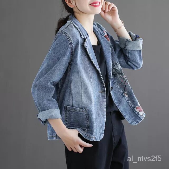 Pakaian Luar Jaket Jeans Bordir Lengan Panjang Wanita Musim Gugur Baru ORMX
