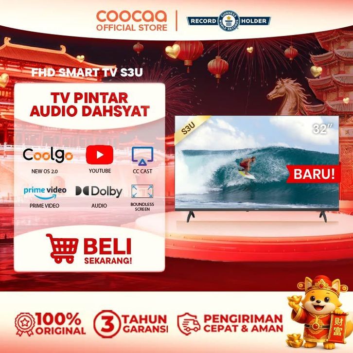 TV COOCAA 32 inch S3U Smart TV - Digital TV - Dolby Audio - Youtube - Mirroring FREE BRACKET TV COCOA GARANSI RESMI