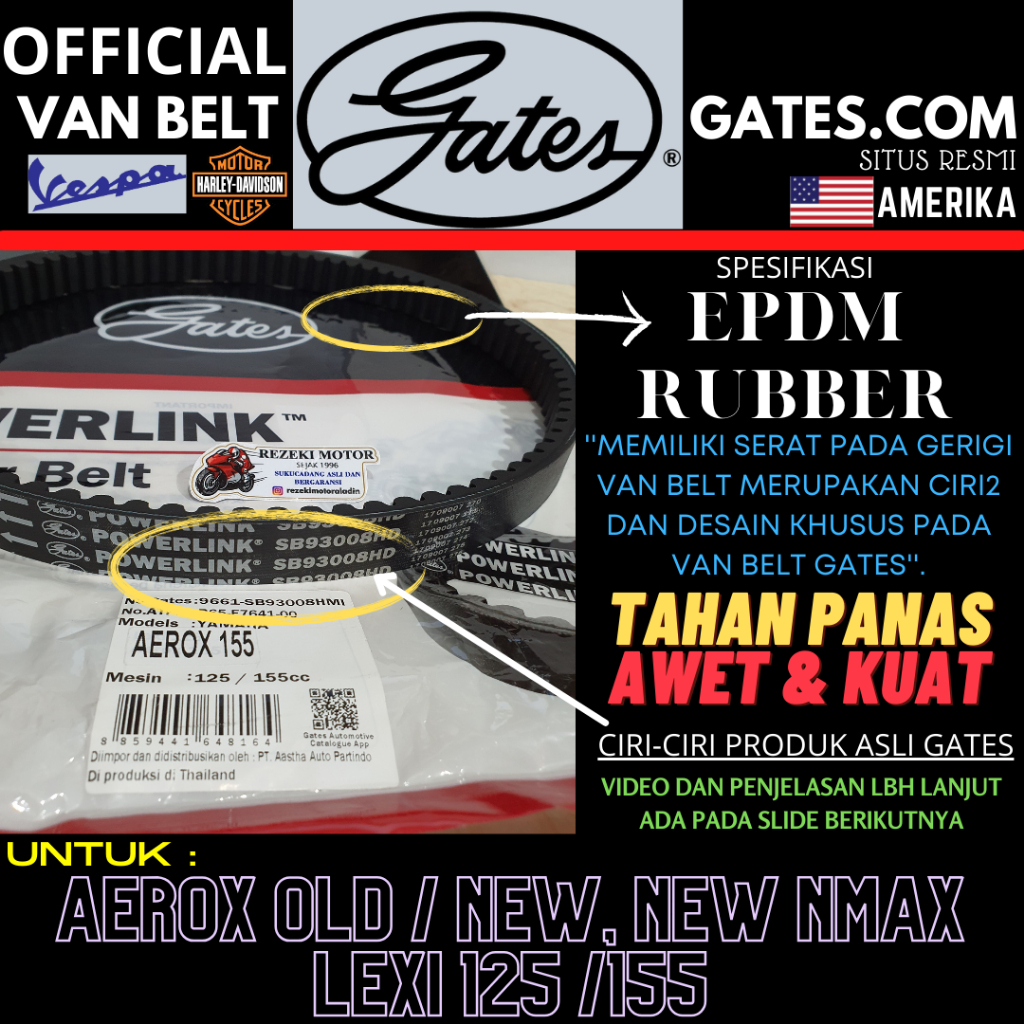VAN BELT ROLLER RACING B65 AEROX / NEW NMAX / LEXI ASLI ORI YAMAHA B65-E7641-00 THAILAND GATES