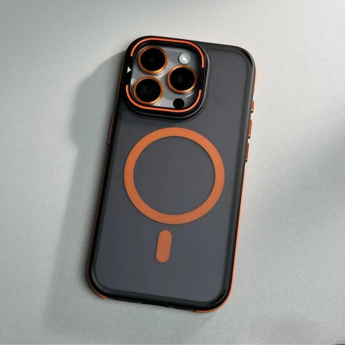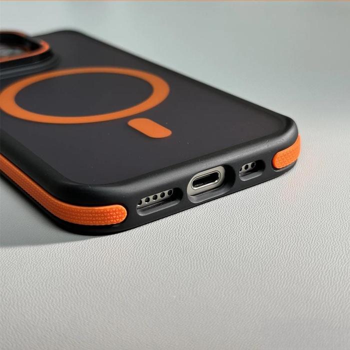 [ TOMCASES ] NEW PREMIUM CASE MAG SAFE FROSTED LENS HOLDER + FREE RING LENS COMPATIBLE FOR IP 11 12 13 14 15 PRO MAX - ORANGE, 11