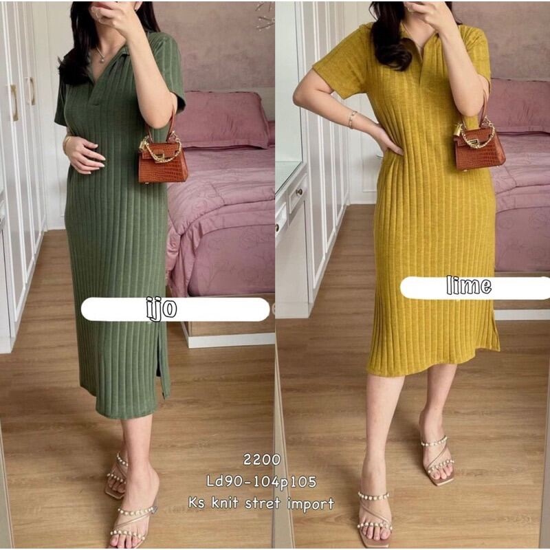 MATILDA KNIT SLIT DRESS CNY POLOS RIB RAJUT PREMIUM DRESS KERAH COLLAR
