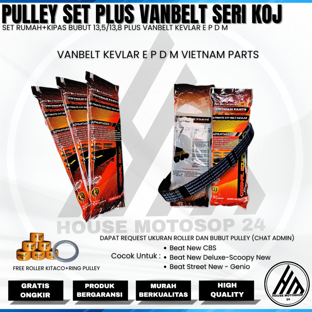 RUMAH ROLLER BEAT DELUXE BEAT NEW SCOOPY NEW PULLEY SET PLUS VANBELT SERI KOJ PULLEY BUBUT 13,5/13,8