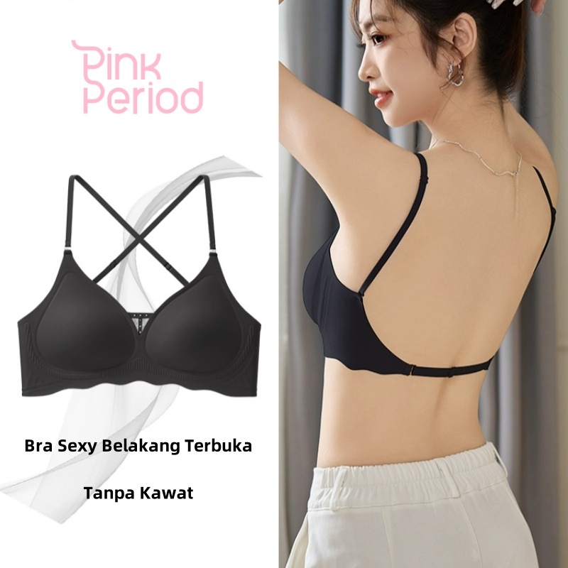 Pink Period Bra Wanita Tanpa Kawat Backless Wanita Seamless Bh Wanita Bra Sexy Belakang Terbuka Bra Push