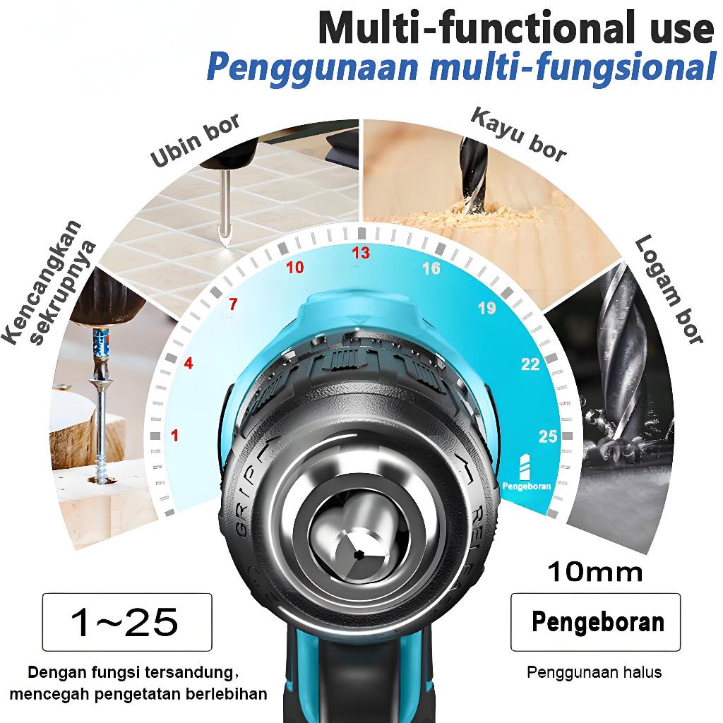DECKER Brushless Cordless Screwdriver 16.8V Bor listrik tanpa kabel bor baterai bor tanpa kabel Obeng bor listrik
