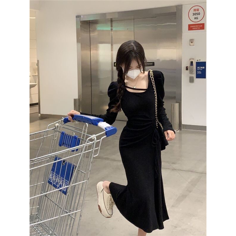 First Girl-Gaun Wanita Basic Knit Slim Long Sleeve dress bodycon baju dress wanita- G009
