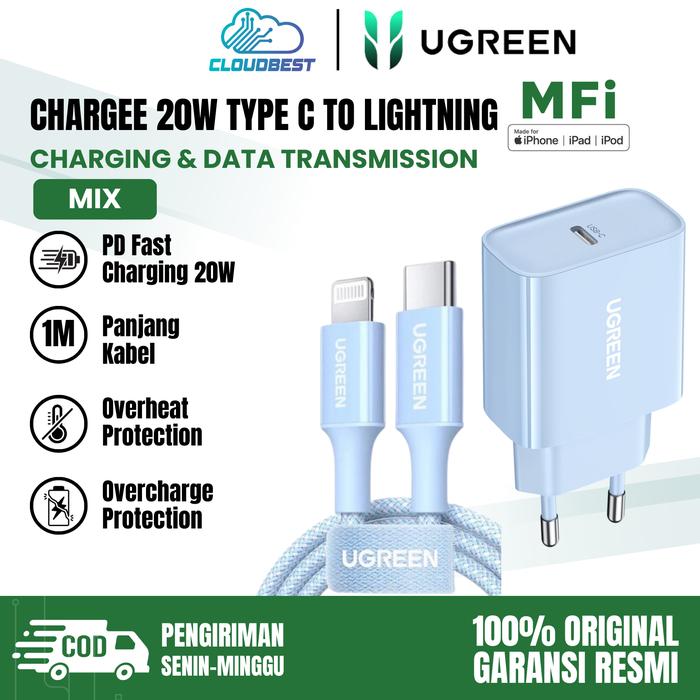 UGREEN PD 20W FAST CHARGING USB TYPE C UNTUK IPHONE - SET WHITE PVC