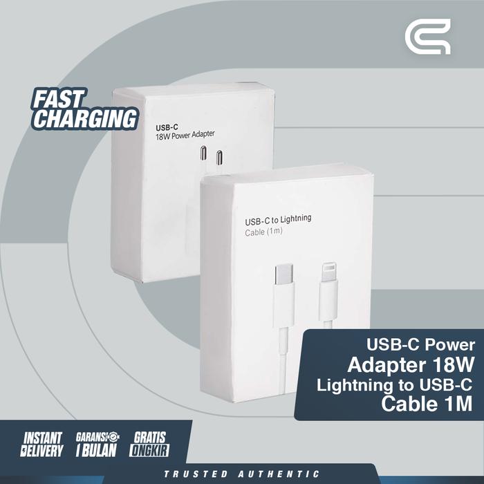 CHARGER IPHONE FAST CHARGING USB C TO LIGHTNING CABLE 1M & ADAPTER 18W