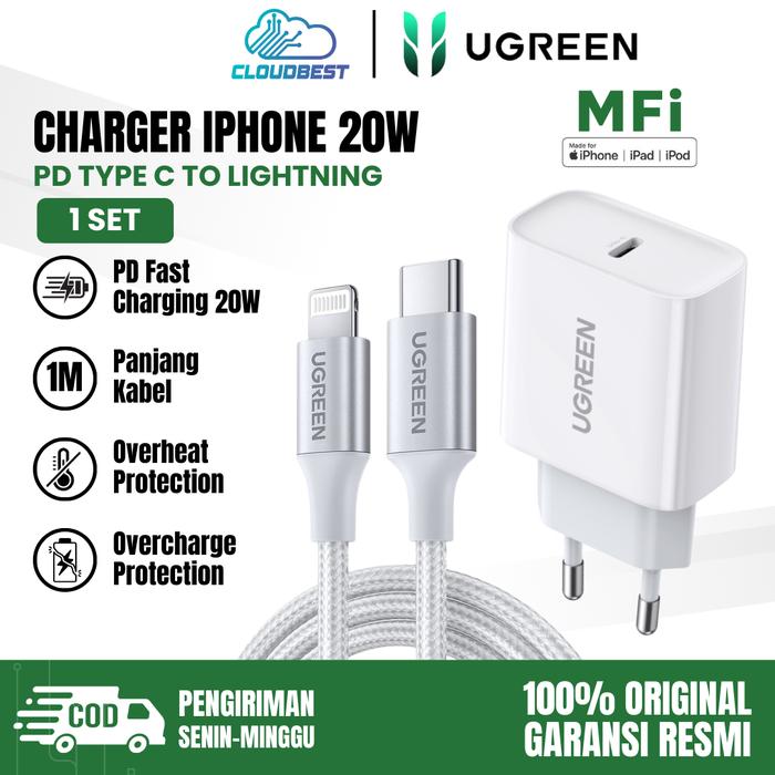 UGREEN PD 20W FAST CHARGING USB TYPE C UNTUK CHARGER IPHONE - SET WHITE PVC