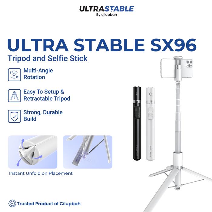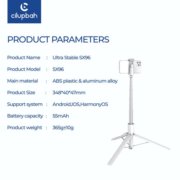 ULTRA STABLE SX96 TRIPOD TONGSIS HP BLUETOOTH - SELFIE STICK LIPAT BISA BERDIRI, MULTI-ANGLE ROTATION, COCOK UNTUK VLOG LIVE STREAMING, REMOTE LEPAS PASANG, RINGAN & KUAT - BLACK