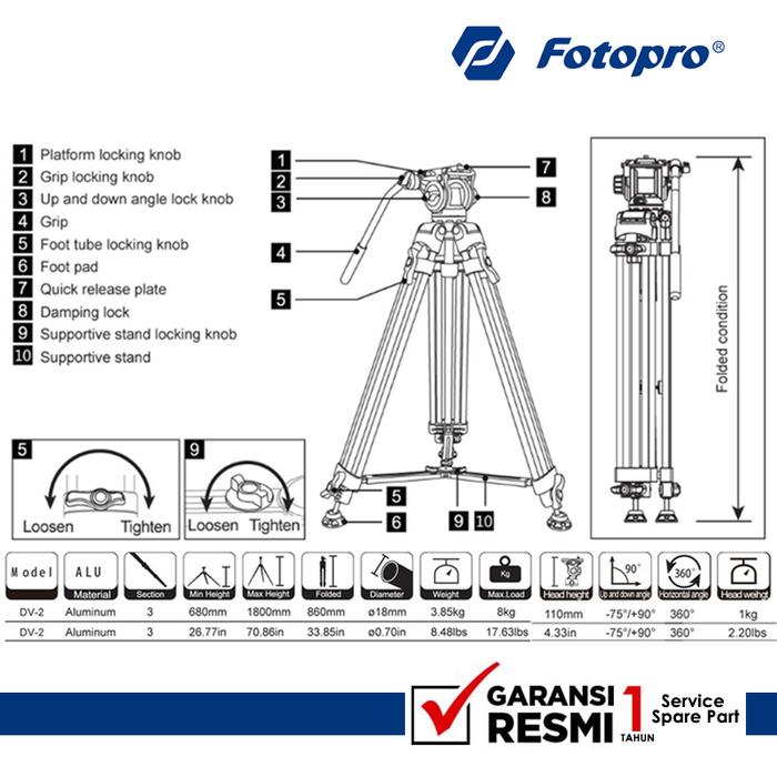 FOTOPRO TRIPOD DV 2 VIDEO - TRIPOD FOTOPRO DV2 TRIPOD KAMERA MIRRORLES