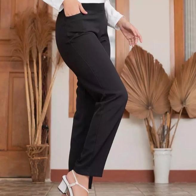 Celana Formal Wanita Pinggang Karet M L Xl Kerja - Hitam, M