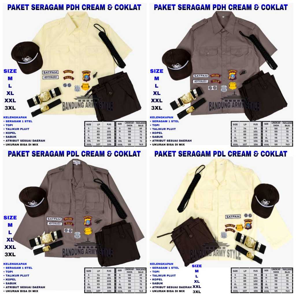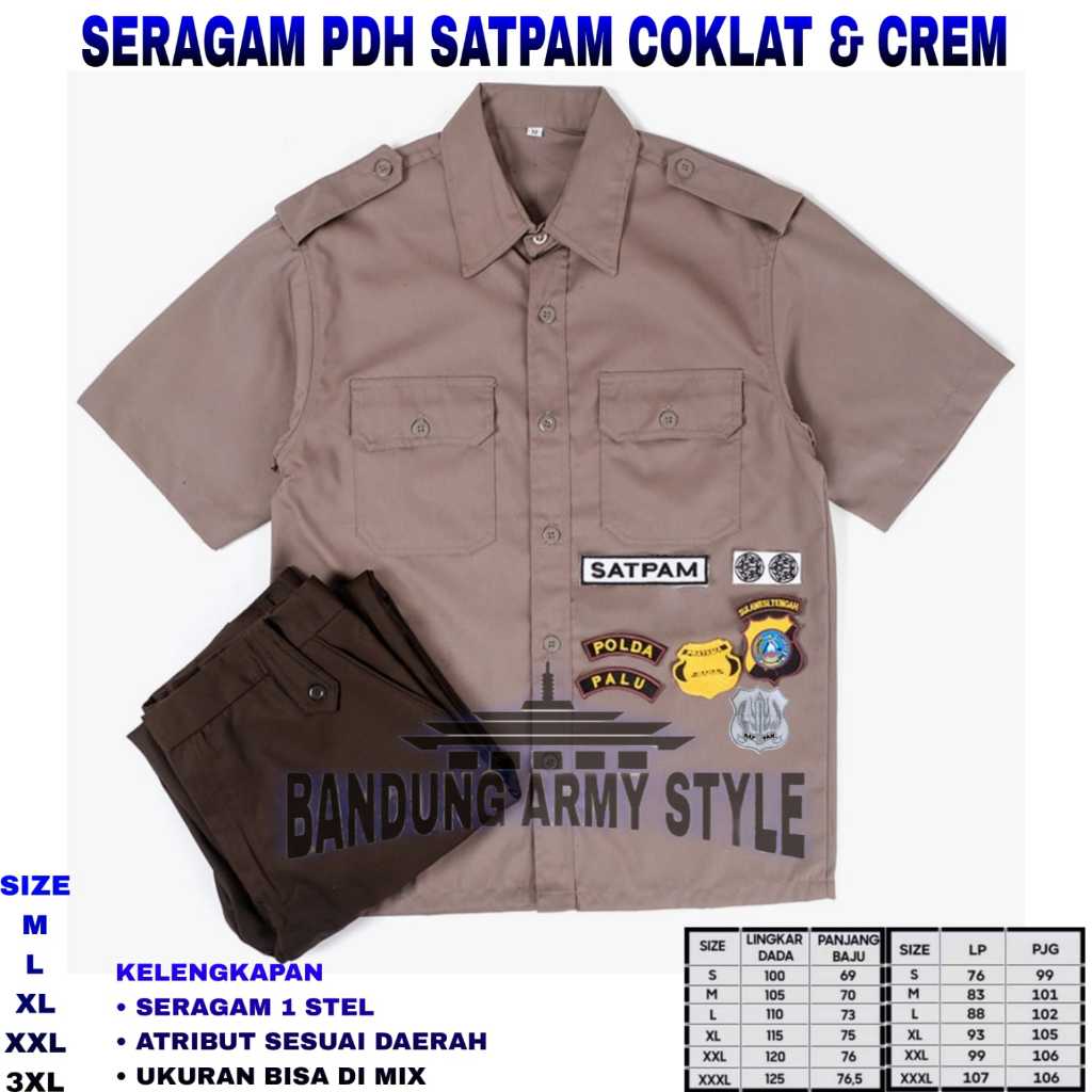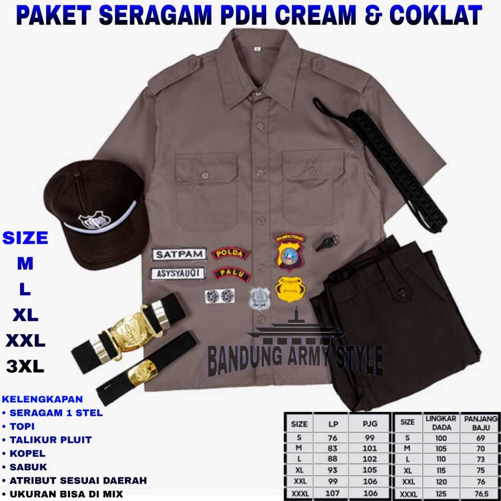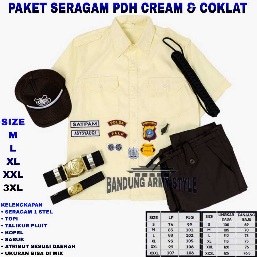 PAKET PDH SATPAM / SERAGAM SATPAM CREAM/ SATPAM PDL / KEMEJA SATPAM / STELAN SATPAM